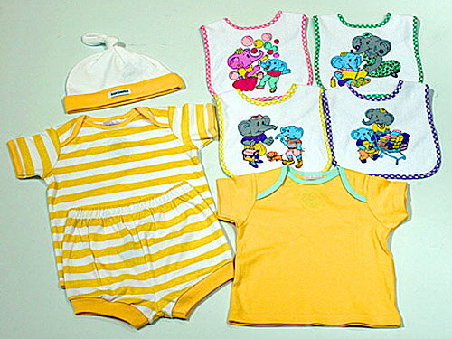 ディリーの必需品はご出産の御祝に最適です!!************************************************** ☀一年中、大活躍するボディセット!! ☀明るいカラーも魅力的!! ☀キャップもおそろいで快適!! ♪