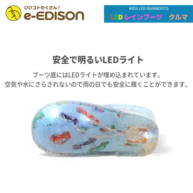 この商品は キッズ 傘と御そろい【LEDレインブーツ】クルマ 明るい色のプリント キッズ用 レインブーツ 長靴 雨の日グッズ 男の子用 ポイント 裏地は柔らかいファブリックを使用しており、楽で快適 透き通った素材でLEDライトがよりキレイに明るく見える! ブーツの底にはLEDライト!雨の日でも安全! ブーツの低にはLEDライトが埋め込まれています。