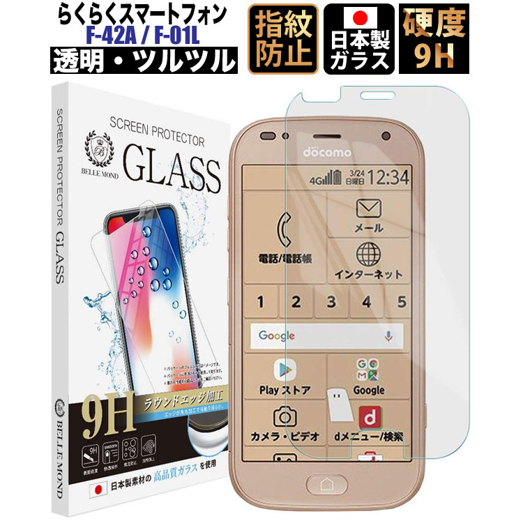 【最大15%OFFクーポン配布中!】らくらくスマートフォン F-42A / F-01L 透明 ガラスフィルム 強化ガラス 保護フィルム フィルム 硬度9H 0.3mm F-01L GCL 定形外