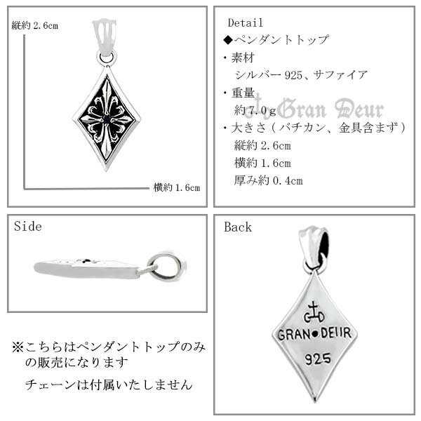 GRAN DEUR 2カラーサファイア クロスプレート シルバーペンダントトップ チェーンなし ヘッド トップ 925 銀の蔵 メンズ ネックレス 男性用 ペンダント 十字架 メンズネックレス 男性用ネックレス ブランド プレゼント 人気 彼氏 おしゃれ