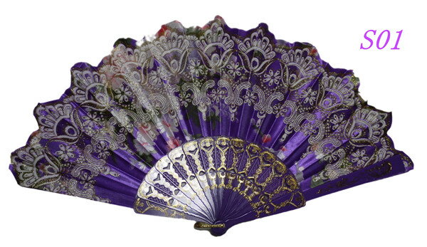 華麗で富貴な金付け布扇子 素材:布、プラスチック 長さ:約24cm 開いたサイズ:約43cm 多量在庫にて、格安販売。